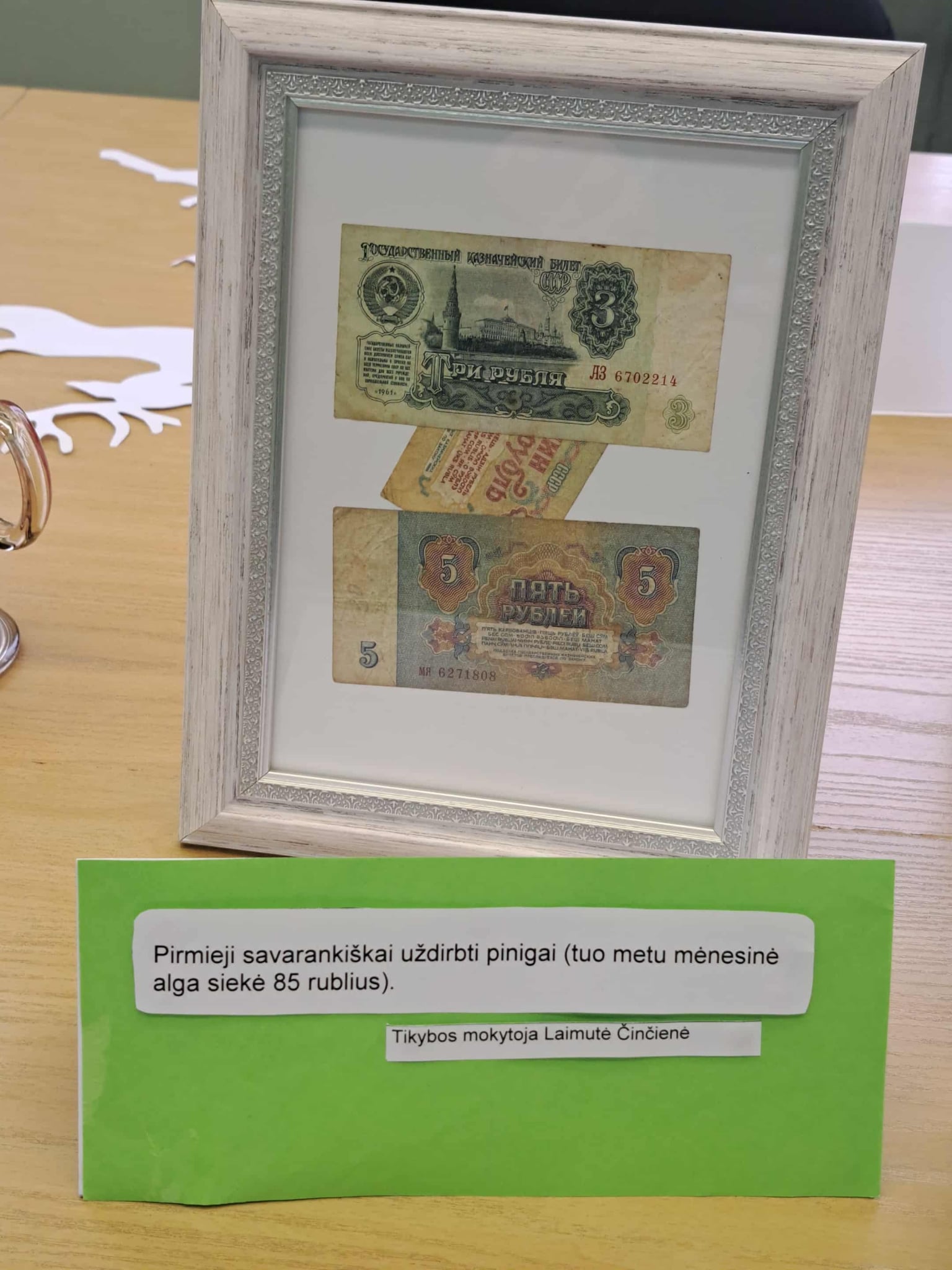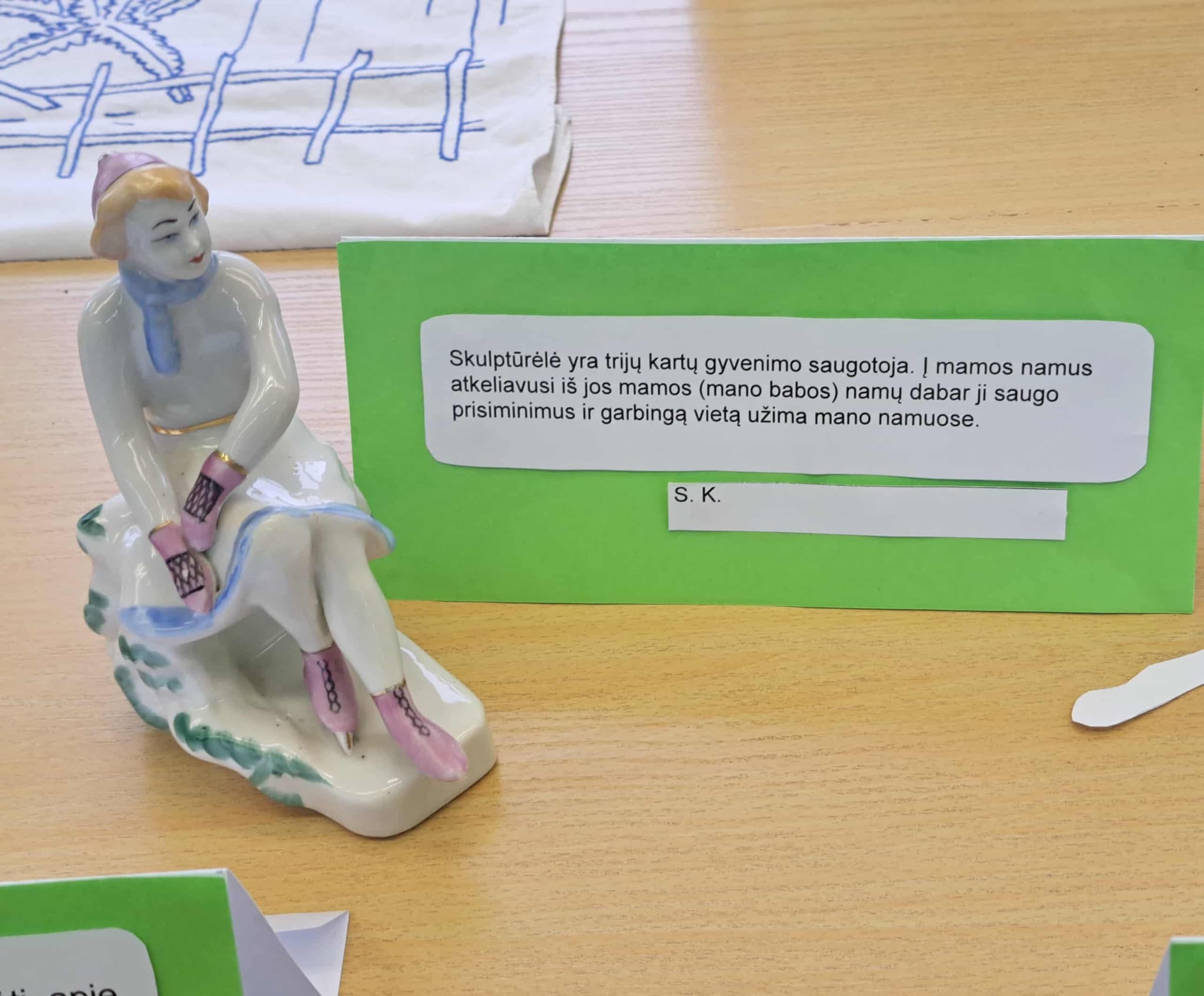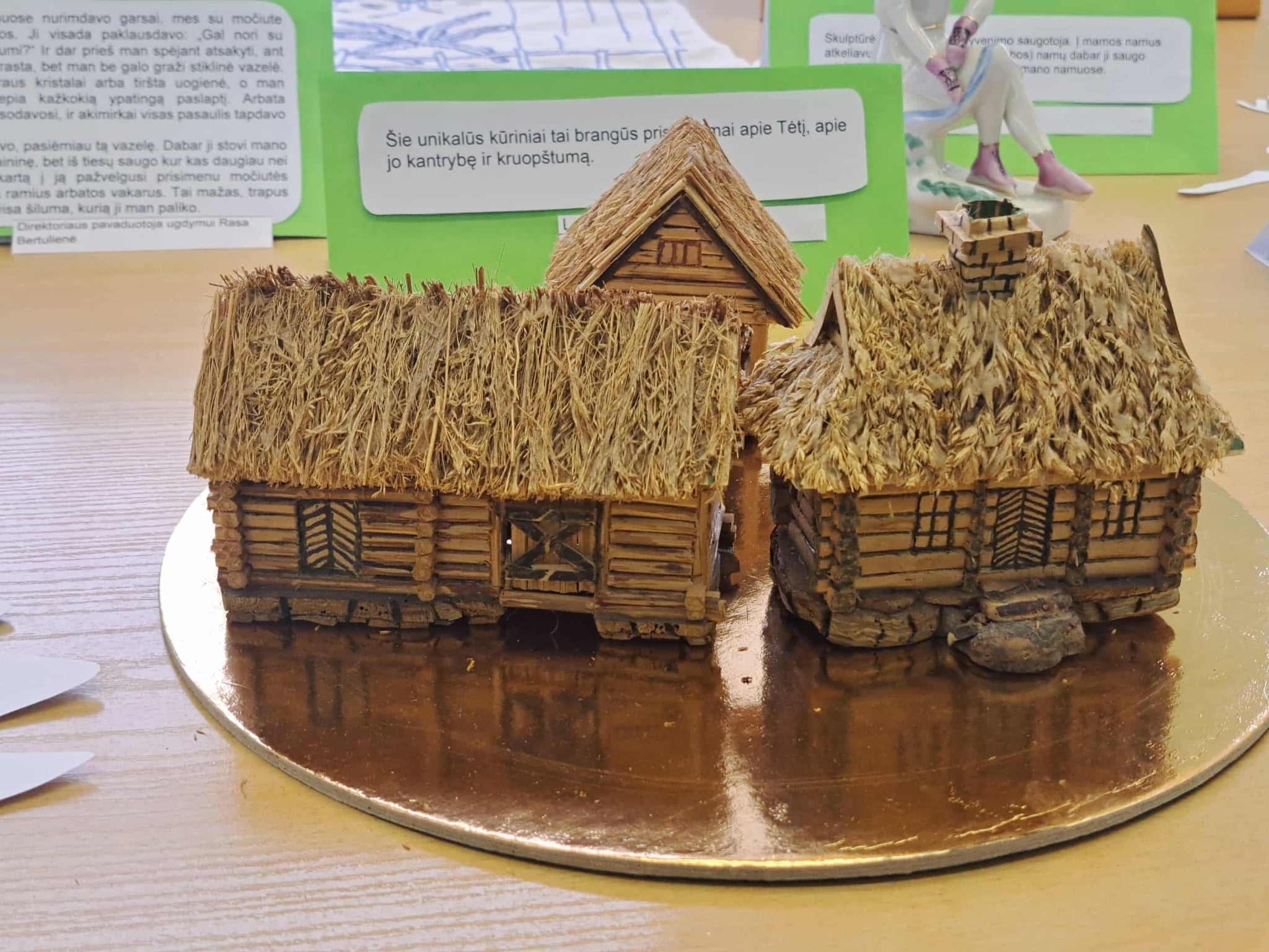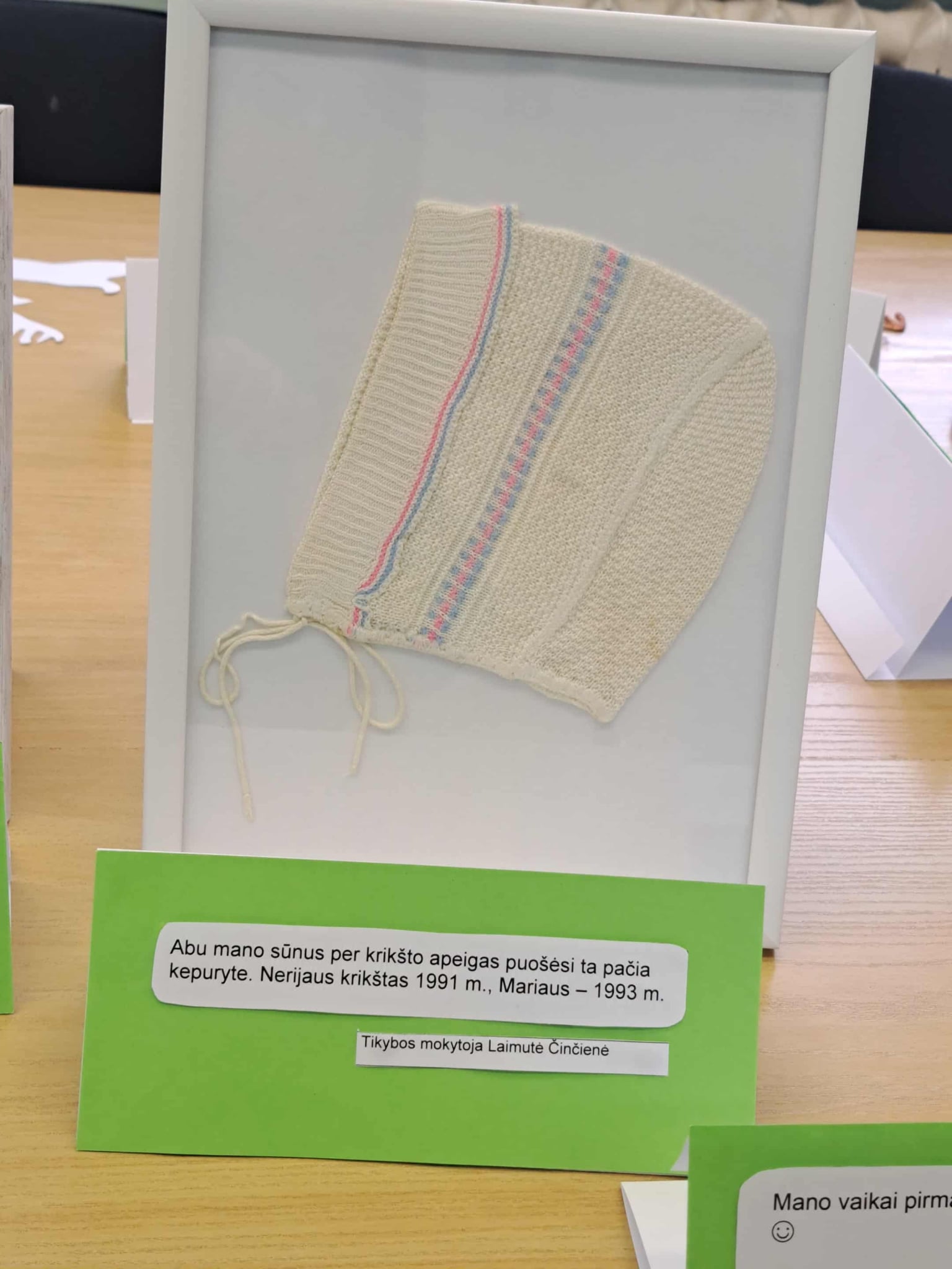 Gimnazijos biblioteka brangių prisiminimų istorijomis pildėsi po truputį. Pirmasis ypatingas daiktas su istorija – lėlė Ramunė, po to mamos rankomis siūti kūdikio drabužėliai, močiutės siuvinėtas kilimėlis, mokinių sveikinimai, vaikų išradingos dovanos, tėčio rankomis kruopščiai sumeistrauti mediniai, šiaudiniais stogais namukai, mokytojos rankomis ir fantazija sukurtas lėlių teatras, vaikystės knygos, atsiminimų sąsiuvinis… Ir čia – tikrai ne visi brangiausi mūsų darbuotojų prisiminimai. Kiekvienas eksponatas ima spinduliuoti šilumą, kai perskaitai jo istoriją…