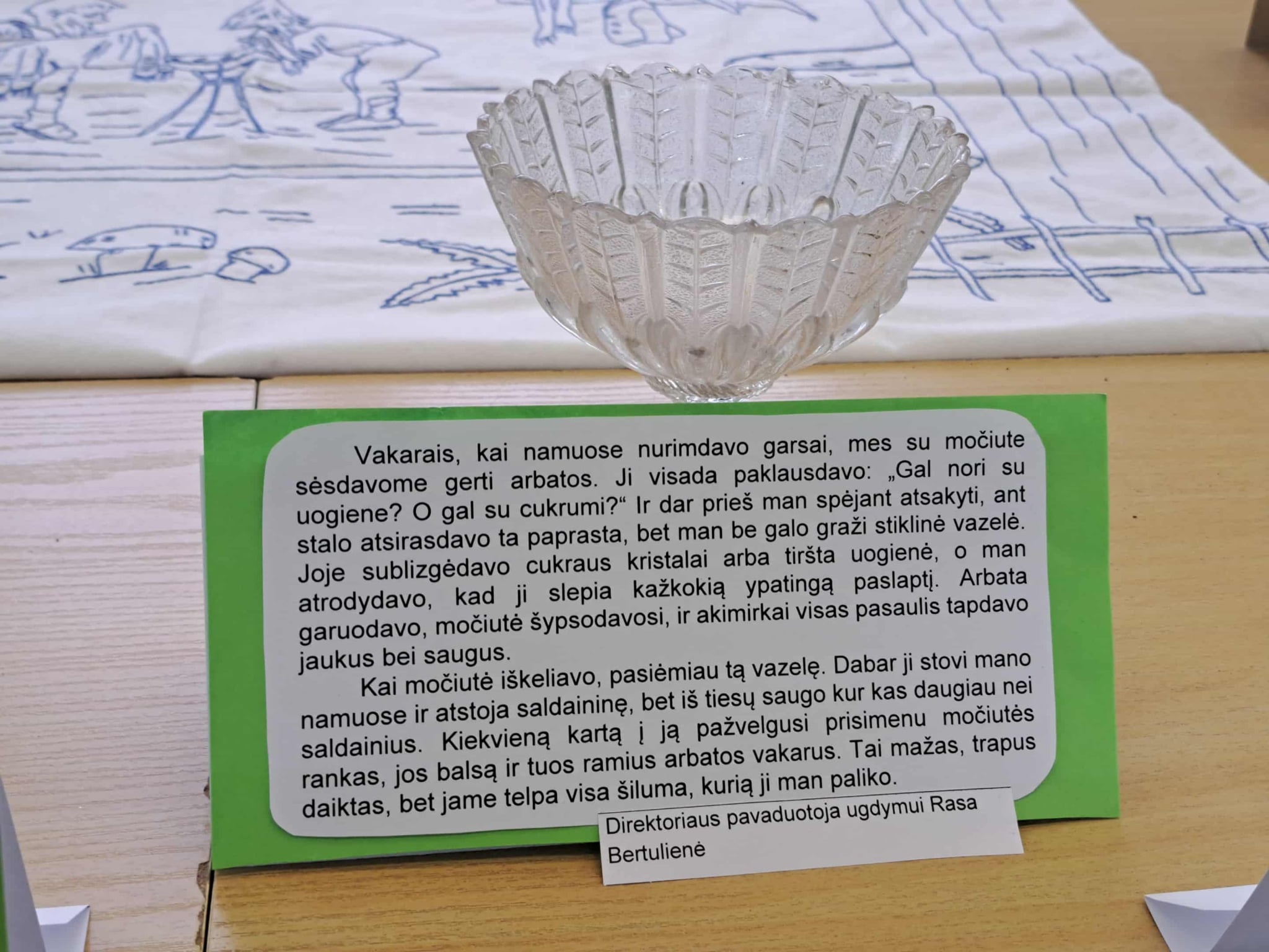 Kas galėtų pagalvoti, kad paprasta trintuvė, padėta atokiausiame virtuvės kampe, arba močiutės saldaininė, kažkada viliojusi uogiene prie arbatos, gali tapti ištisa istorija? Tai neabejotinai paaiškėjo parodoje „Brangaus prisiminimo istorija“, kuri jau baigiasi. Po vasario 1-os ją turėtų pakeisti kita.