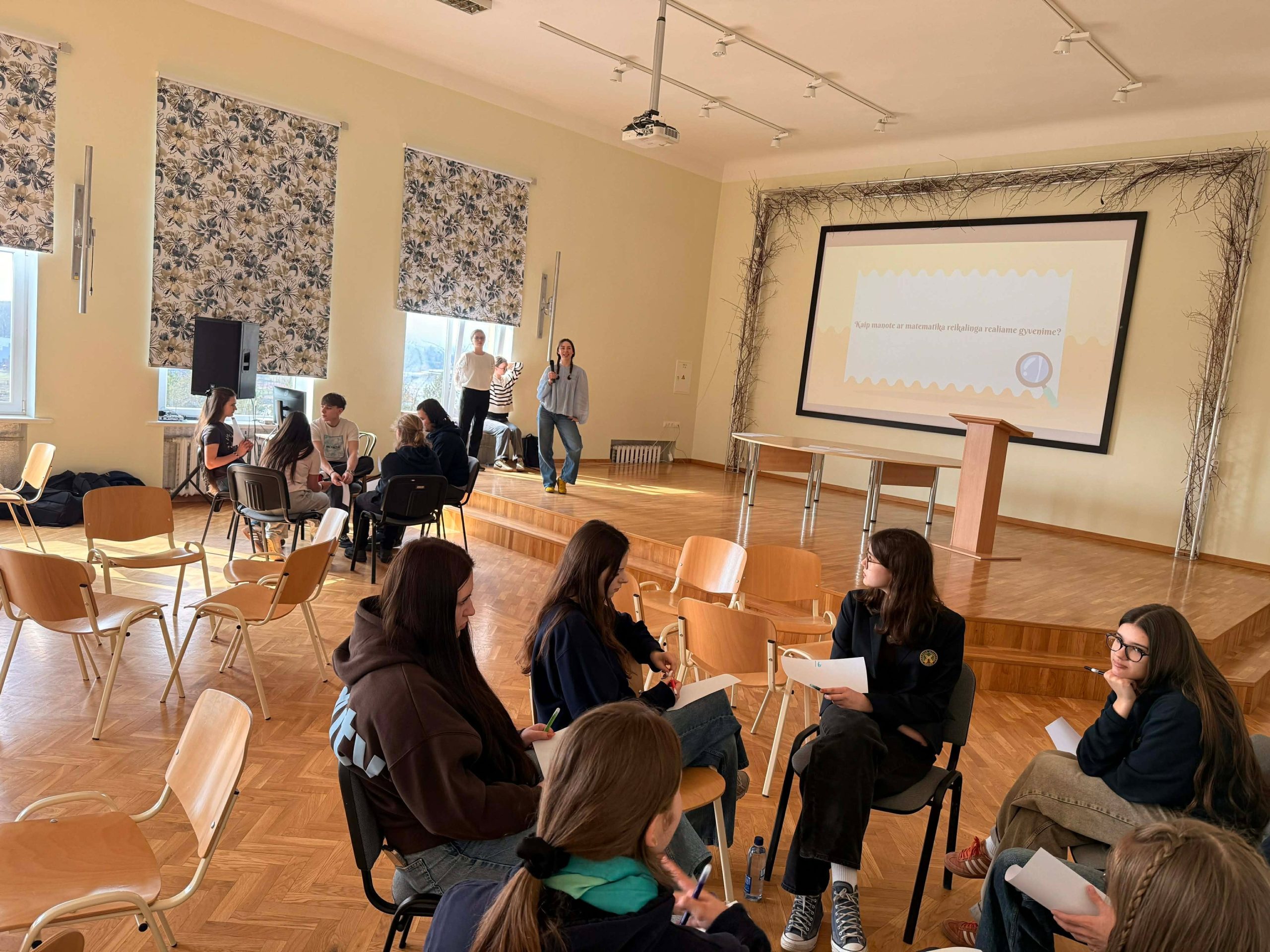 Trečiadienį vyko tarpklasinės žaidynės – debatai, skatinantys apmąstyti matematikos naudą ir prasmę.