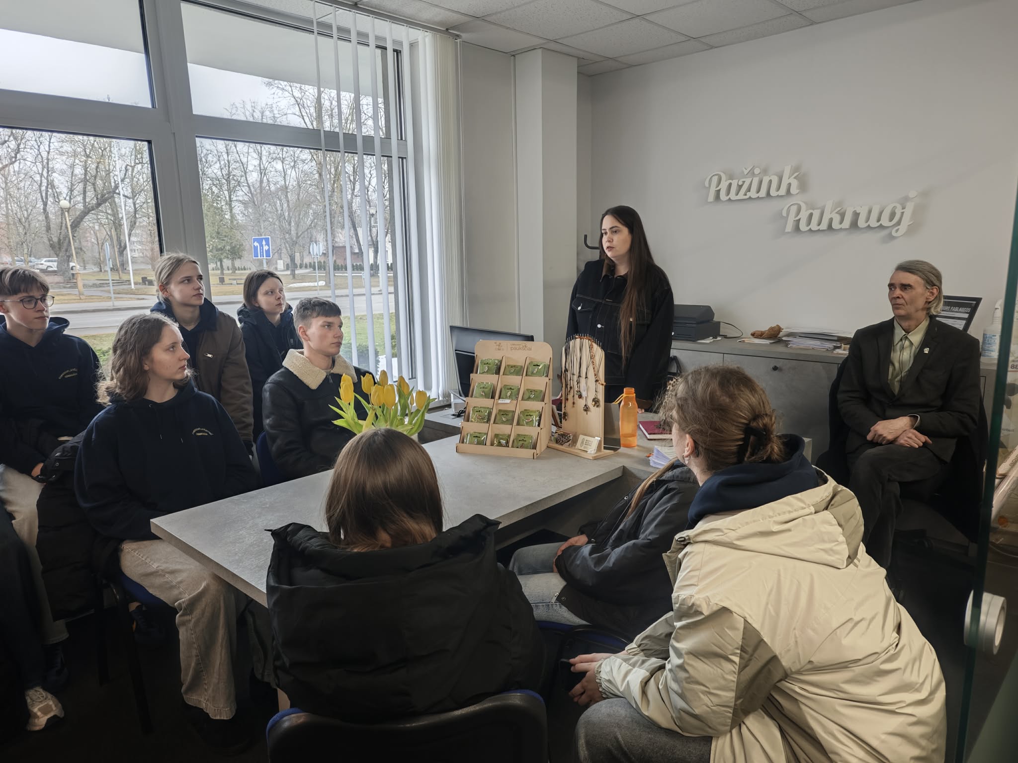 Kovo 16 d. Pakruojo „Atžalyno“ gimnazijos II a, II b ir II c klasių gimnazistai apsilankė Pakruojo turizmo ir verslo informacijos centre. Mokiniai susitiko su Pakruojo turizmo vadybininke Rūta Kukiene, kuri papasakojo apie Pakruojo rajono turizmo objektus, pristatė lankomiausius, supažindino su turizmo vadybininko darbo kasdienybe bei aptarė, kokių kompetencijų reikalauja ši profesija.