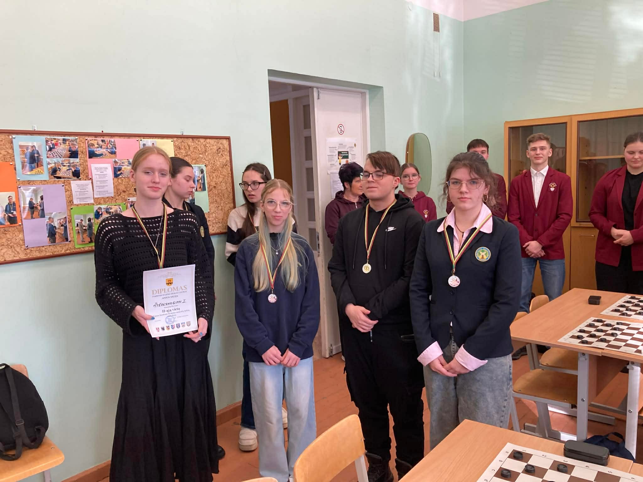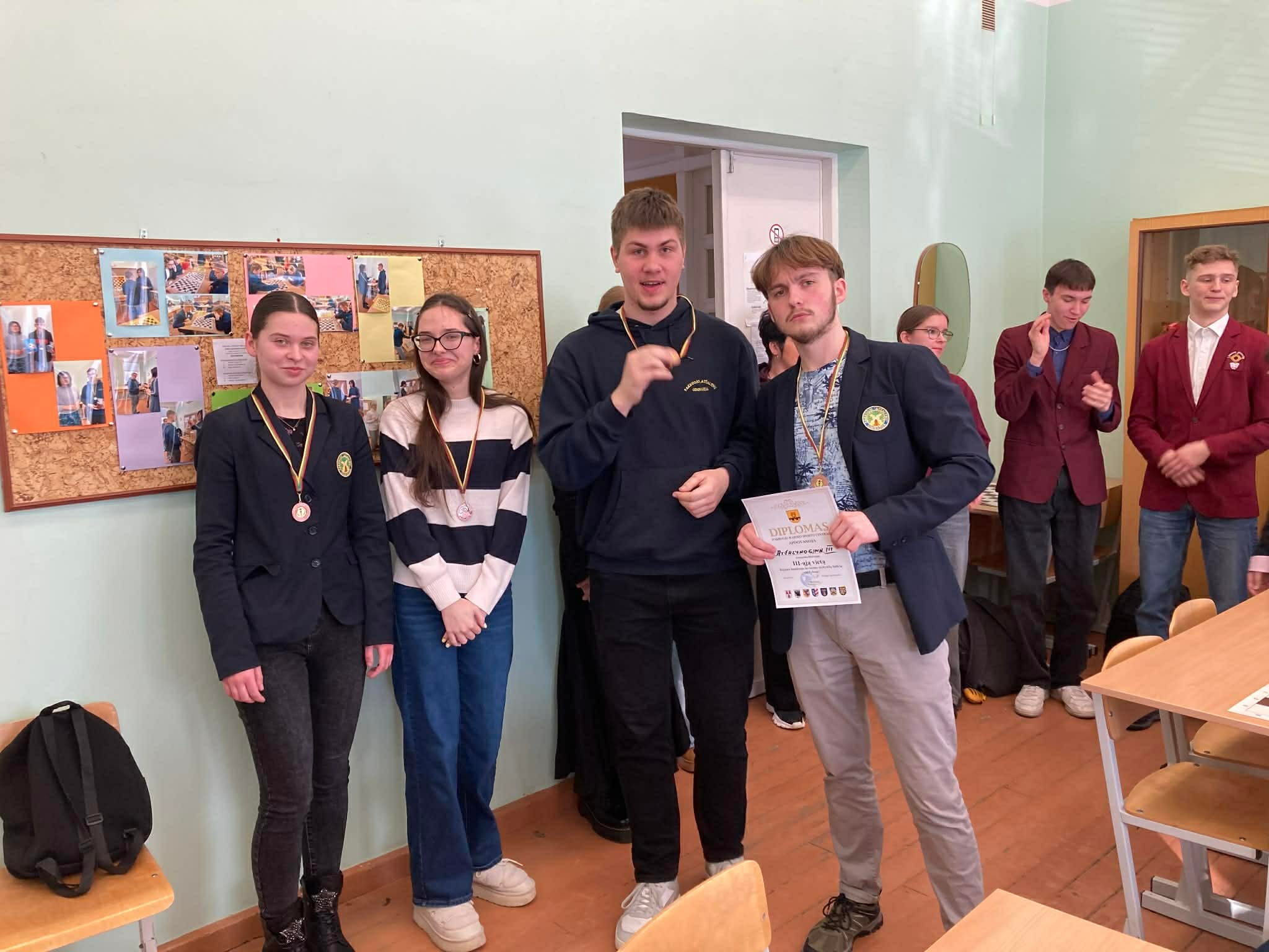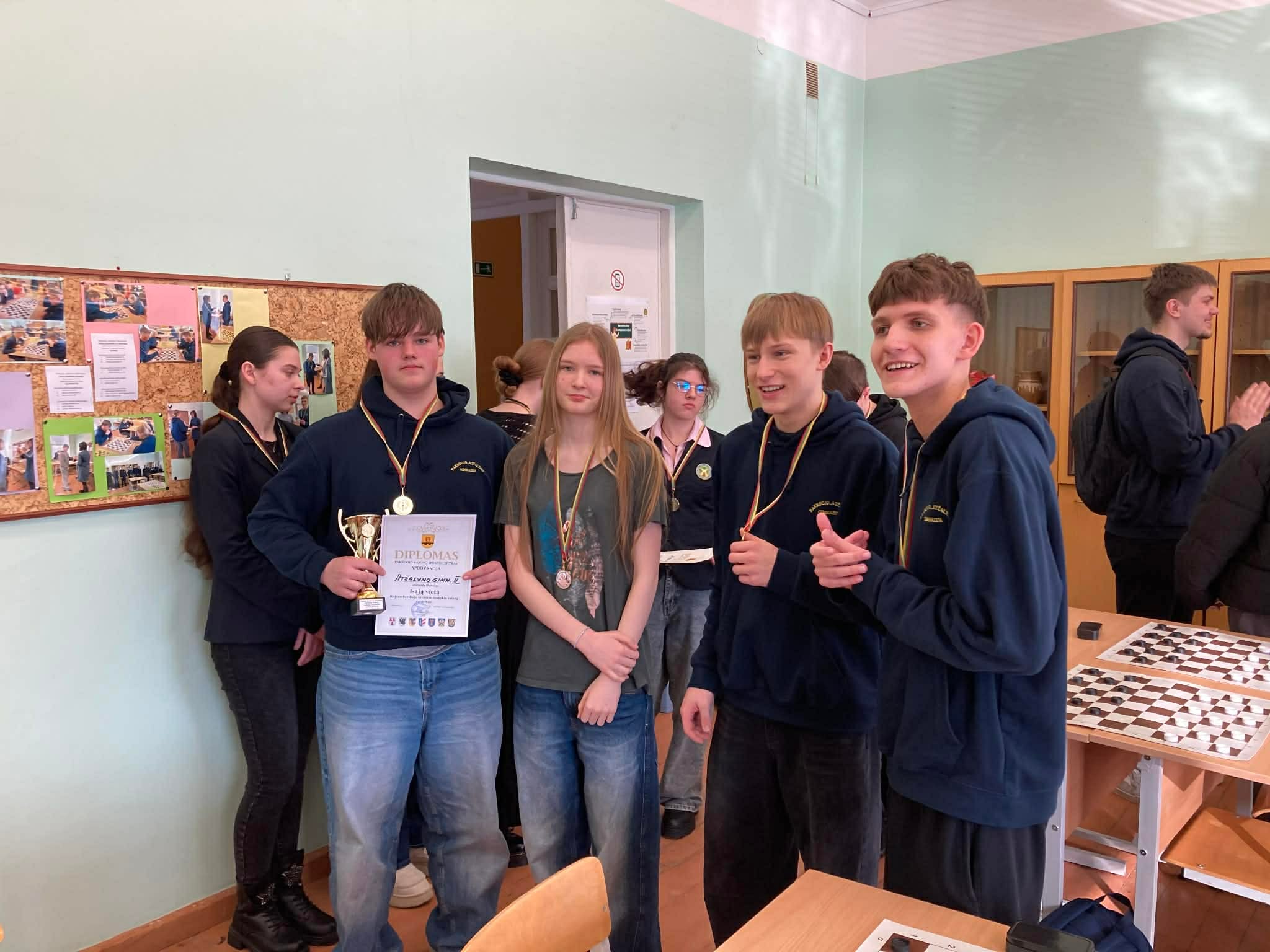 Vasario 26 dieną vyko Pakruojo rajono BLM moksleivių šaškių varžybos, kurias kasmet organizuoja Pakruojo rajono sporto centras. Pakruojo „Atžalyno“ gimnazijai atstovavo 3 komandos, kurios ir pasidalijo prizines vietas. Pirmąją vietą laimėjo gimnazijos pirmokų ketvertas D. Gasiūnas, J. Sadauskas, L. Dragūnas ir D. Markovaitė. Šiuo metu grupelė planuoja vykti į Lietuvos mokyklų šaškių varžybas. Antrieji liko T. Nagulevičius, D. Murauskaitė, K. Muzikevičiūtė ir L. Mikeliūnaitė. Gimnazistai nusileido nugalėtojams vos keletu taškų. Trečios vietos laimėtojai – A. Gasaitis, P. Juškevičius, E. Šimaitytė ir R. Razulytė – džiaugiasi, kad pateko į prizininkų gretas: „Sekėsi gerai, galėjome pamatyti savo klaidas, kad tobulėtume ateityje.“