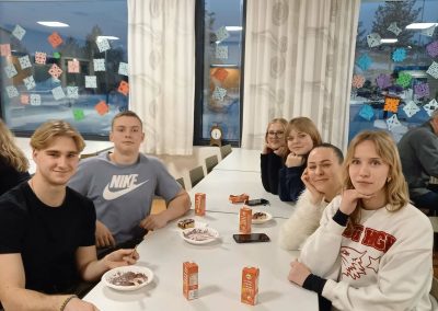 Per mobilumo savaitę vyko ir popamokinė veikla. Mokiniai gamino ir dažė ledo kubus, kurie vėliau pavirto žibintais, lankėsi meno parodoje, slidinėjo, čiuožė pačiūžomis, kepė dešreles ant laužo, maudėsi suomiškoje pirtyje. Kai kuriems net pavyko pamatyti Šiaurės pašvaistę – itin retą reiškinį. Įdomi patirtis laukė Nallikari paplūdimyje, stingdant 25 laipsnių šalčiui, vaikščiojome ant Botnijos įlankos ledo, kopėme į Nallikari švyturį, kuris garsėja tuo, kad buvo pastatytas ant bangolaužio.