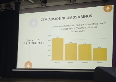 Svečias gimnazistams pateikė įdomios statistikos – palygino Lietuvos didmiesčių butų nuomos kainas, vidutinius atlyginimus, aptarė jaunų žmonių įsidarbinimo galimybes. Vicemeras atkreipė dėmesį, kad apie šiuos svarbius aspektus jauni žmonės dažnai net nesusimąsto rinkdamiesi studijų kryptį ar miestą.