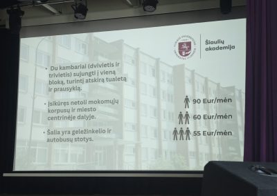 Taip pat buvo pabrėžti svarbiausi privalumai, kodėl verta studijuoti Šiauliuose: žemos būsto nuomos kainos, kokybiški ir prieinami bendrabučiai, geros jaunų žmonių įsidarbinimo galimybės, patrauklios stipendijos, platus studijų programų pasirinkimas bei kitos studijuojantiems aktualios naudos.